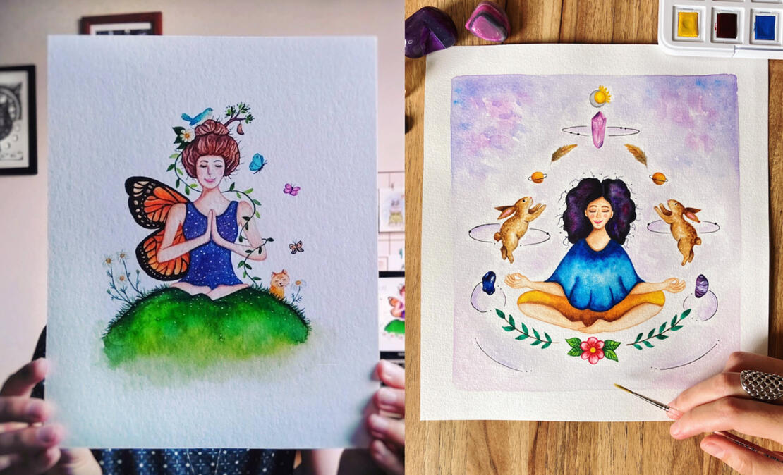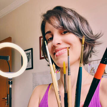 Sou formada em Artes Visuais. Busco unir aquarela, nanquim e elementos naturais nas minhas composições. Meus temas principais são: animais e seus simbolismos, felinos, natureza e artes femininas. Além de criar produtos, eu também trabalho com encomendas personalizadas e estou me aventurando pelo universo de contar histórias através das minha ilustrações. Adoro estar em contato com a Natureza e procuro transmitir através da minha Arte essa conexão tão essencial.