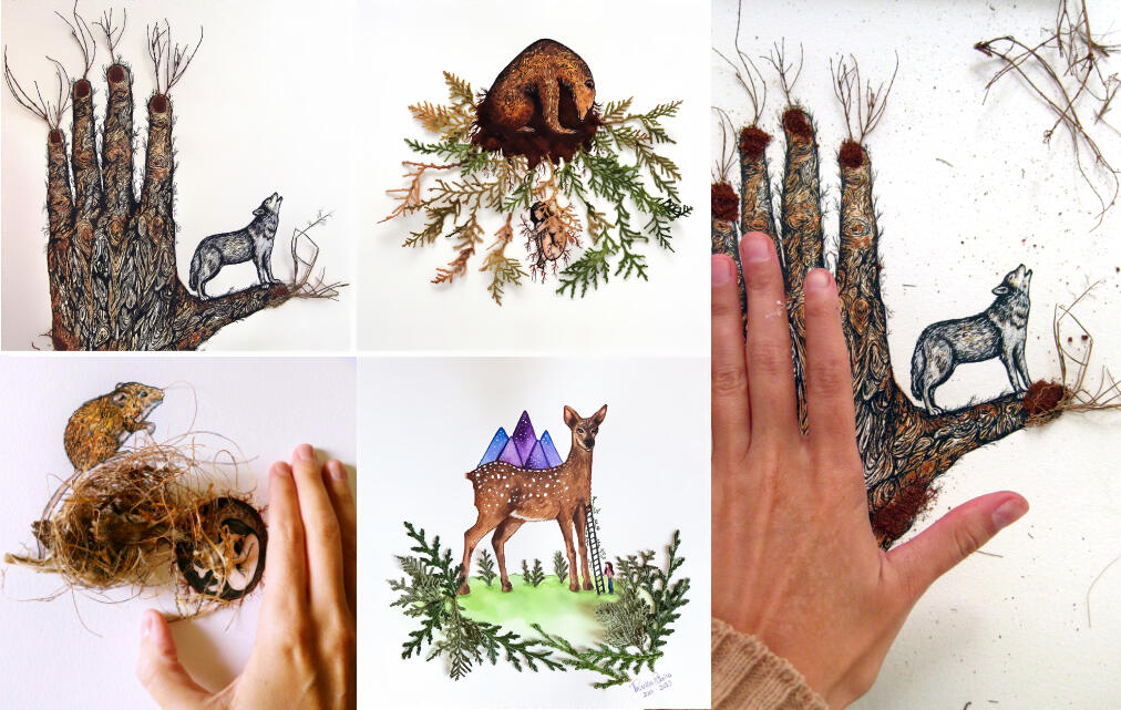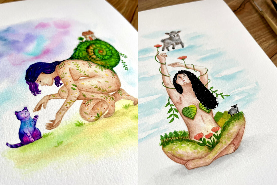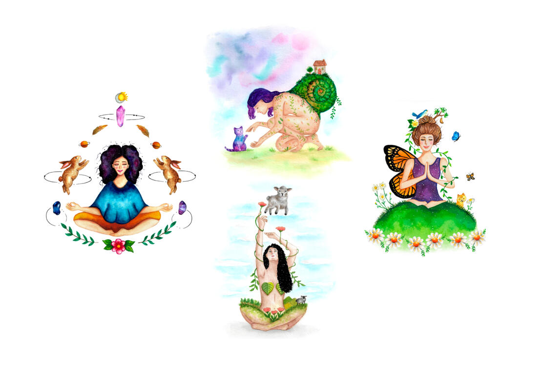 Ilustrações que expressam as sutilezas do que é cíclico em nós, nossas conexões com a Natureza, com os Animais e com toda poesia que dá sentido a nossa sensibilidade e força.